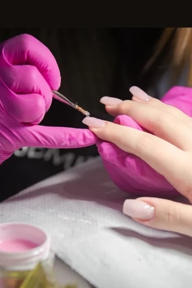 É aplicado camadas de um gel específico sobre as unhas naturais, modelando e esculpindo o formato desejado, então utiliza-se uma cabine de luz UV para secagem do gel.