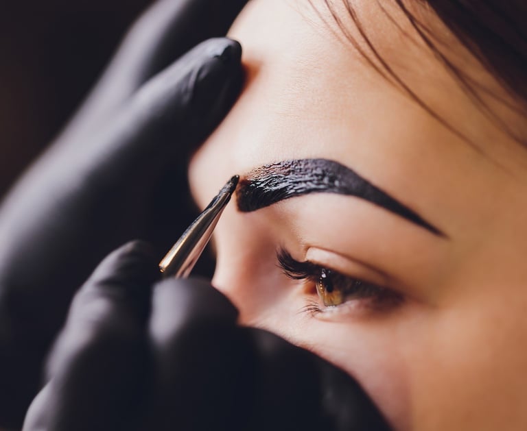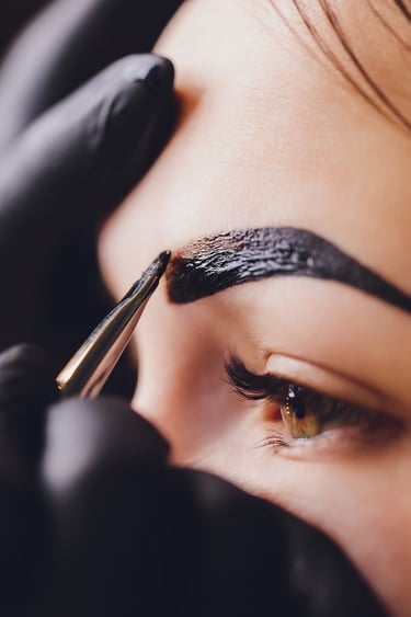 Consiste em aplicar uma tintura de henna natural nas sobrancelhas para cobrir falhas e definir o formato das sobrancelhas.
